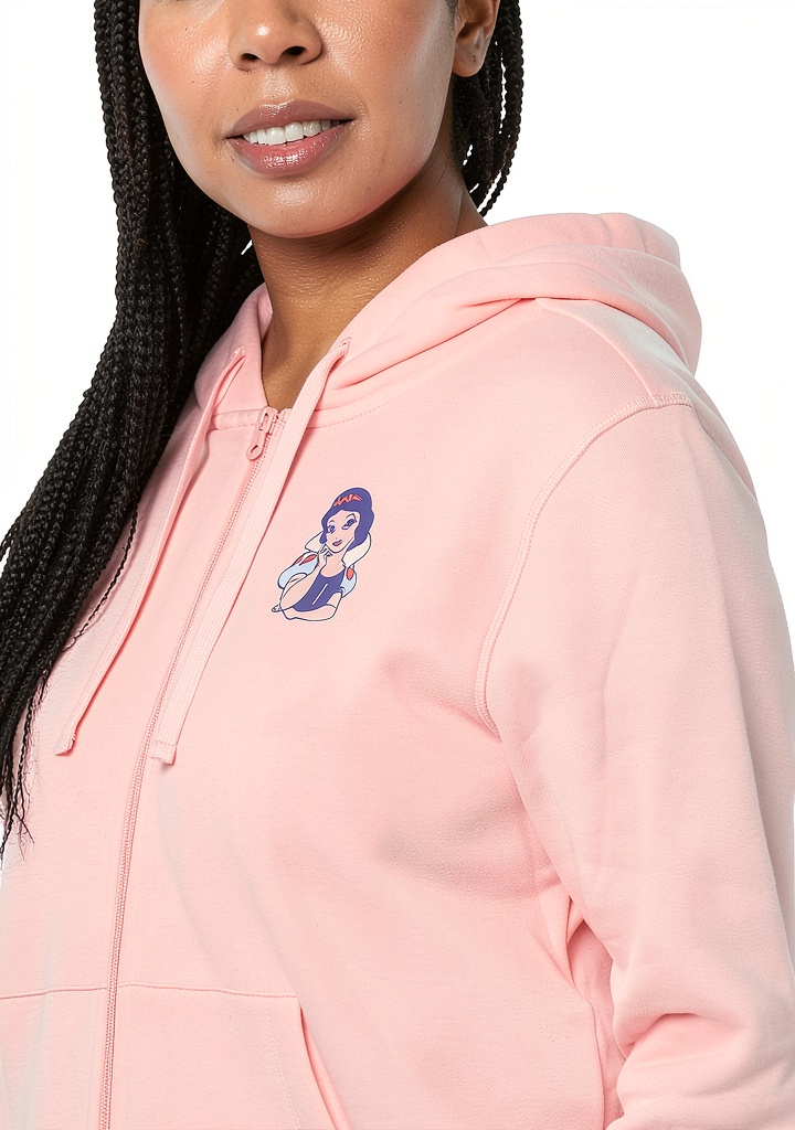This Amazon Essentials women’s hoodie combines comfort and style with a classic fit that allows easy movement. Made from a midweight cotton blend fleece with a brushed interior, it feels buttery soft against the skin. The hoodie features a full zip closure, adjustable drawstring hood, front pockets, and rib detailing at the hem and cuffs for enhanced stretch and recovery. It is available in various sizes from X-Small to 6X and includes officially licensed character designs such as Star Wars, Marvel, and Snow White, adding a touch of personality to your everyday wardrobe.