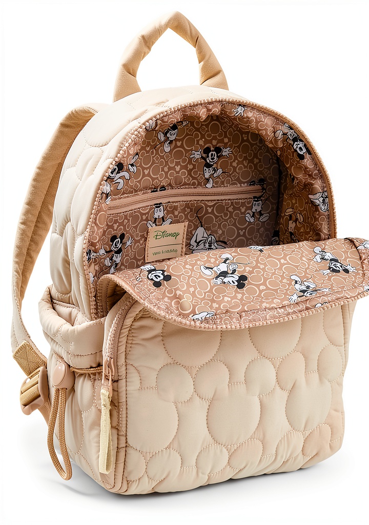 - Disney-themed design with subtle Mickey Mouse patterns and diamond-quilted texture